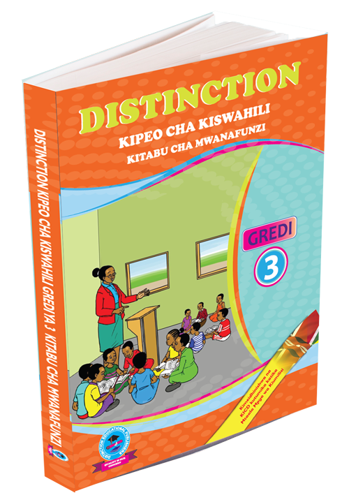 Distinction Kipeo cha Kiswahili, Gredi ya Tatu Msururu wa Distinction Kiswahili ni vitabu vilivyoandaliwa kwa sababu ya somo la Kiswahili. Vitabu hivi vimeandaliwa kulingana na mtalaa wa umilisi. Moja ya vitabu katika msururu huo ni Distinction Kipeo cha Kiswahili, Gredi ya Tatu. Hiki ni kitabu kilichotungwa kwa lugha nyepesi na rahisi kwa uelewa wa mwanafunzi wa Gredi ya Kwanza. Pia, mpangilio wa sura, mada ndogondogo na shughuli katika kitabu hiki umerahisisha utumiaji wa kitabu chenyewe.